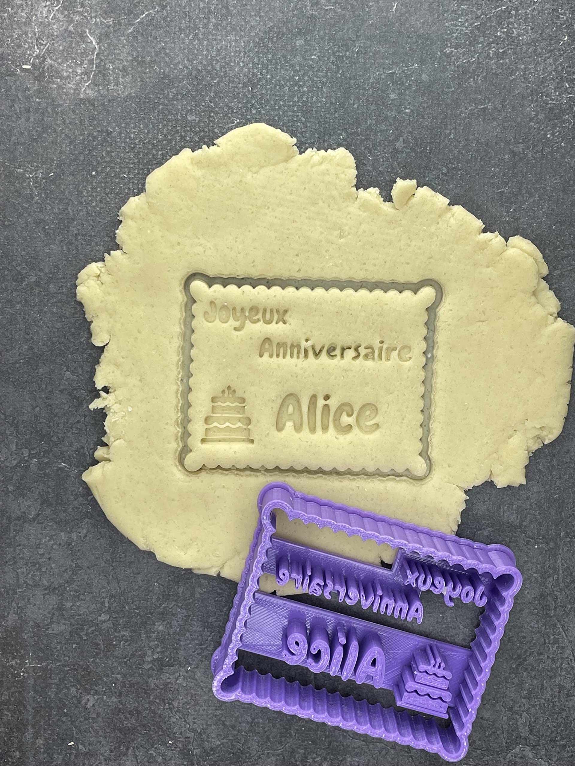 Emporte pièce -Joyeux Anniversaire + prénom - Personnalisation - pour la réalisaton de biscuit sablé, patisserie, pate à sucre -Décoration gateau-Fait maison- ELACE